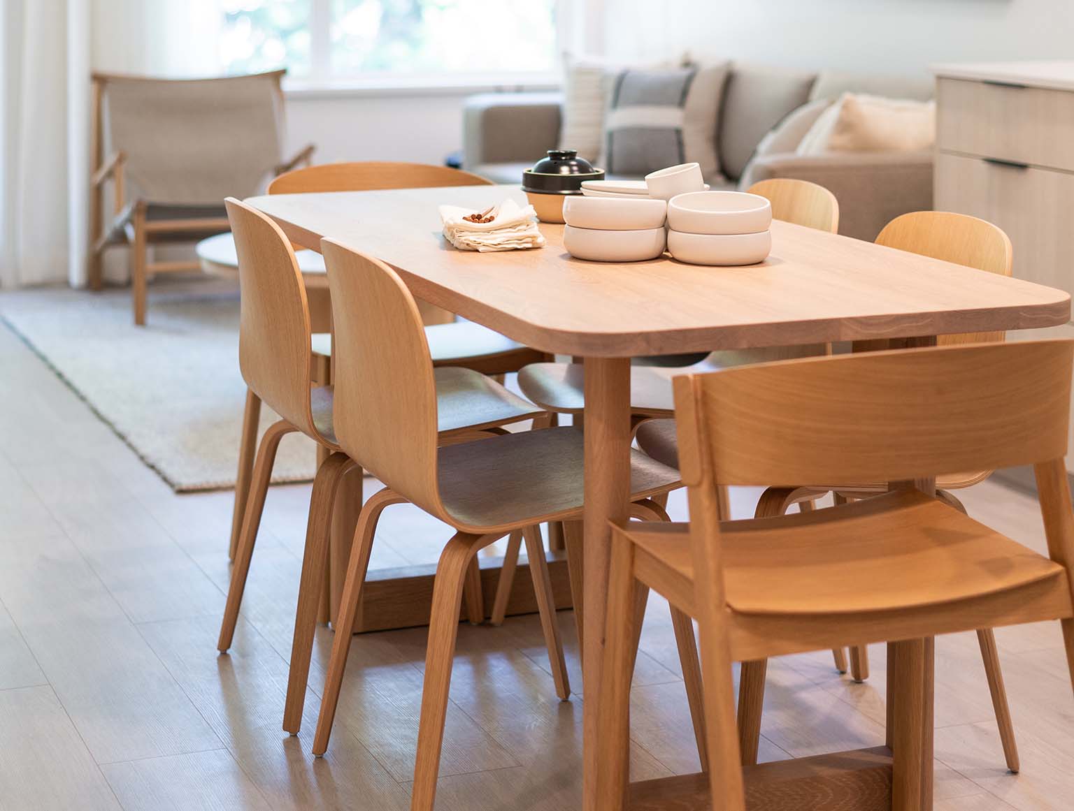 Natural woodgrain finishes, polished quartz countertops and stainless-steel appliances create a kitchen that feels warm and well-crafted. The open-concept layout keeps cooking, dining and living connected – perfect for everyday meals and gathering with friends and family.